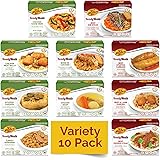 KJ Poultry Kosher Ready Meals - (10 Pack Variety - Beef, Chicken & Turkey) Prepared Entree Fully Cooked, Shelf Stable Microwave Dinner Travel Military Camping Emergency Survival Protein